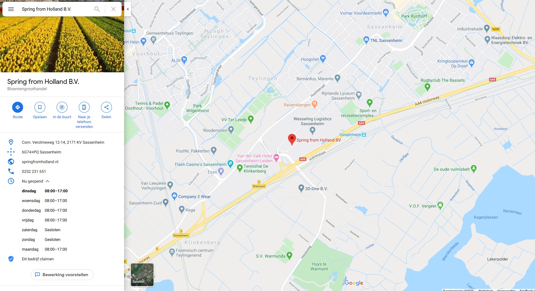 Spring From Holland BV, Cornelis Verolmeweg 12-14, 2171 KV Sassenheim - NL Tel: +31 (0)252 231651 Fax: +31 (0)252 231469 Email: info@springfromholland.nl